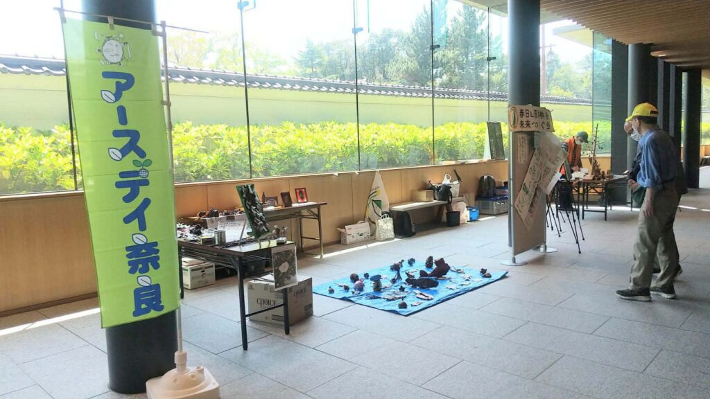 毎年開催しているアースデイ奈良。数年前より、登大路園地の開催から、各地でアースデイを掲げて開催する「あちこち開催」に移行し、つなぐ会では毎年奈良公園バスターミナルを利用して開催しています。